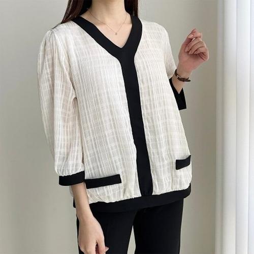 [다잇템][다잇템] 여자 봄정장 요루 30대하객 들러리 와플 Y넥 블라우스_16593522_588872