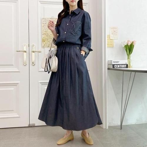 [다잇템][다잇템] 여자 SS 골드버튼 30대 주머니 후레아 롱스커트_16468378_588872
