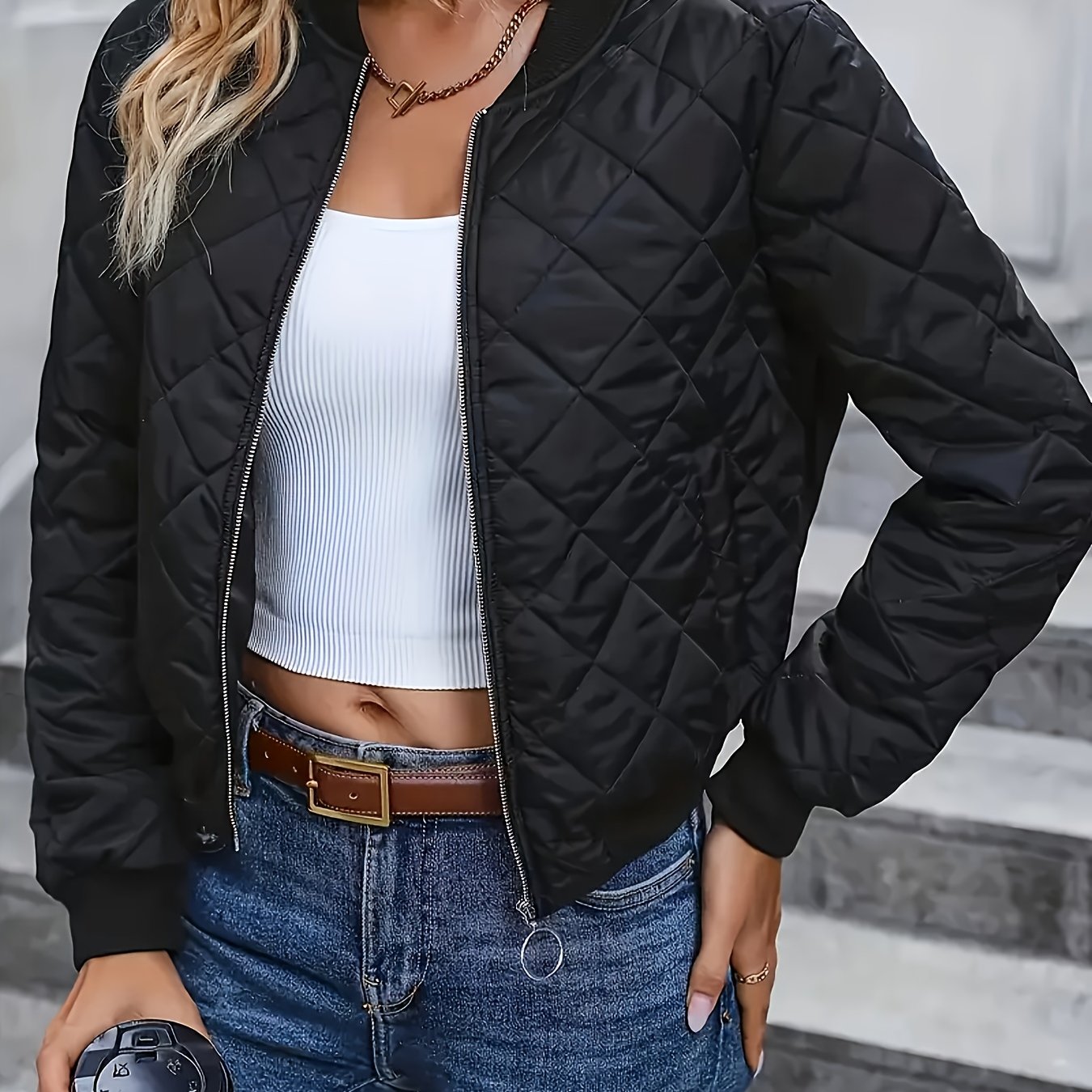 TEMU 여성용 경량 파일럿 재킷 - 라운드넥과 플랫 디테일이 있는 짧은 지퍼 앞면 캐주얼 재킷, 세탁기 사용 가능한 올 시즌 캐주얼 웨어