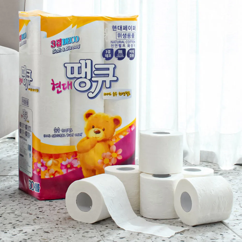 현대땡큐16Mx30롤x1팩 (천연펄프+국내제조생산) 3겹데코 무향무형광 두루마리 휴지 화장지