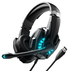 OMIIYA 가상 7.1채널 3D 사운드 아이스 블루 LED 노이즈 캔슬링 마이크 USB 게이밍 헤드셋, 블랙, H59