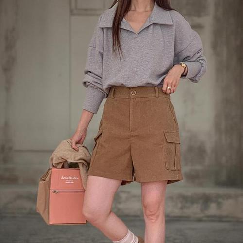 [신상오픈런]여성 골덴 카고 반바지 4부 가을 뒷밴딩 러블리 (41913814)