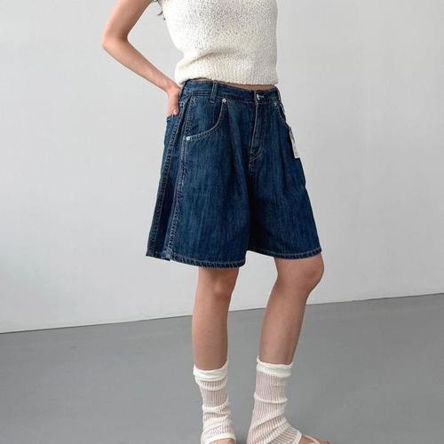 [신상오픈런]여성 여름 반바지 데님 핀턱 링사 스티치 4부 버뮤다 팬츠 (36231697)