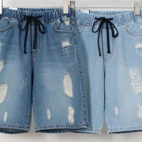 [셀럽하우스]4부 HXHV7366 허리밴딩 여성 데님 청 반바지 진청
