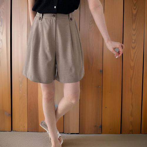 [신상오픈런]여성 뒷밴딩 핀턱 와이드 4부 반바지 (32966237)
