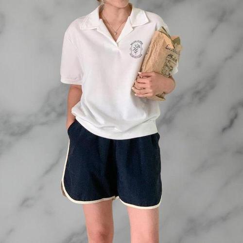 [옷자락] 여성 키치무드 자수 문구 바스락 4부 밴딩 숏팬츠