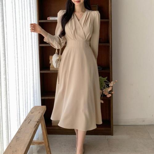 [오너클랜]인기상품 랩패턴 A라인 러블리 스타일 뒷밴딩 브이넥 원피스 [WFJG2Y5_251108]