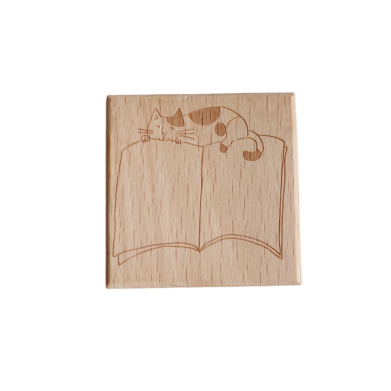 TEMU 1개 고양이 읽는 패턴이 있는 목재 고무 스탬프 - DIY, 저널링, 카드 만들기에 이상적 - 책 애호가, 저널링 액세서리|기발한 디자인|내구성 있는 스탬프