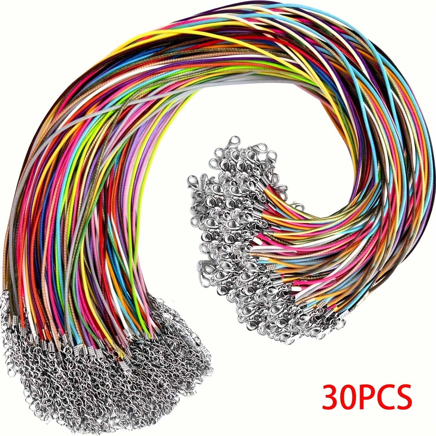 TEMU 30개 컬러 목걸이 코드 버클 포함, 왁스 목걸이 로프, 헵 코드 체인, 19.7인치 대량 조절 가능 목걸이 체인 - 없음, 펜던트 및 팔찌 제작에 적합한 추가 도구, 주얼리 제작 소규모 사업 용품