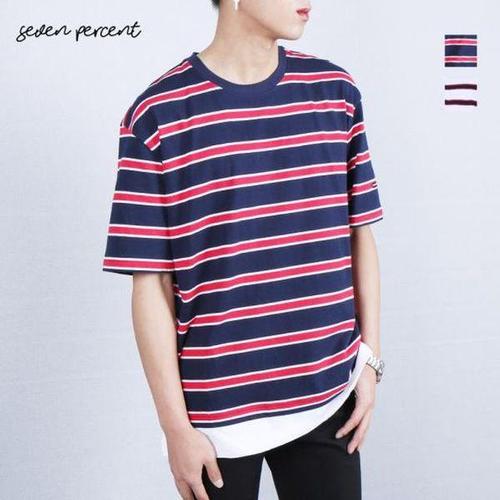 [에이치플러스몰]레이어드 스트라이프 5부 오버핏 반팔