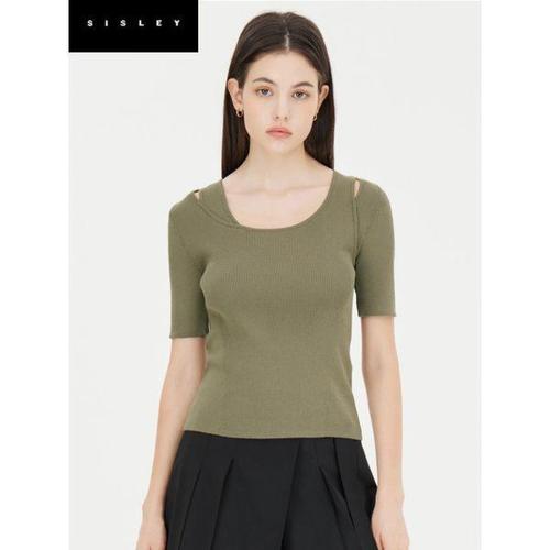 [시슬리]레이어드 5부 소매 니트 (SAKP03441 블랙,카키)_DJ
