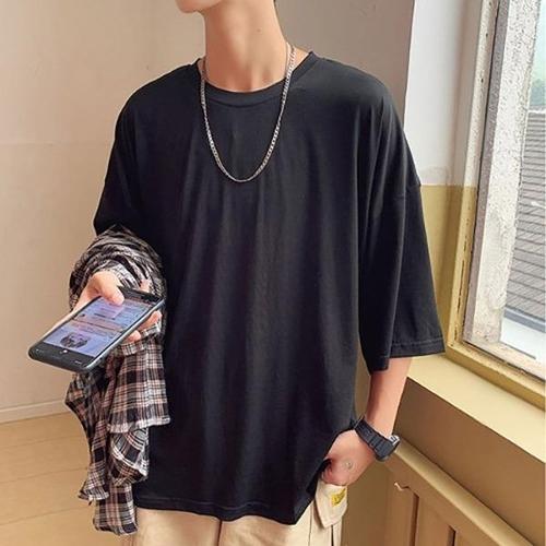 남자 5부 오버핏 박스티 반팔티 레이어드 무지