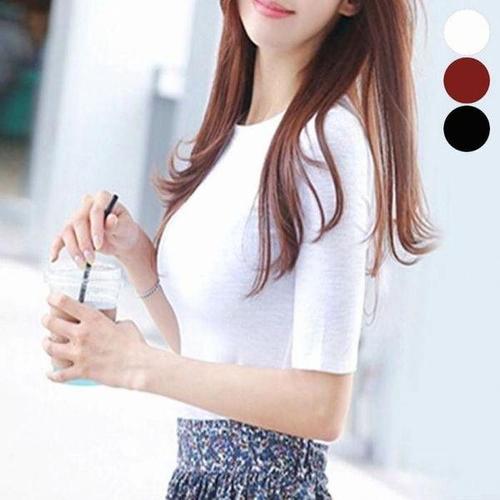 [셀러허브_여성트랜드패션]여자 5부 반팔티 데일리 신축성 티셔츠 이너 라운드넥