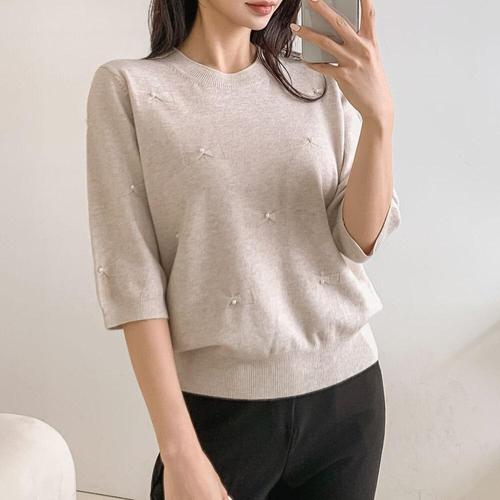 [유야]여성 진주 라운드넥 5부 6부 반팔 니트 -FNT0152- 가을 겨울