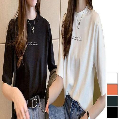 봄 여름 가을 모달 5부 얇은 찰랑 소프트 스판 이너 반목티 티셔츠 목폴라 반팔티