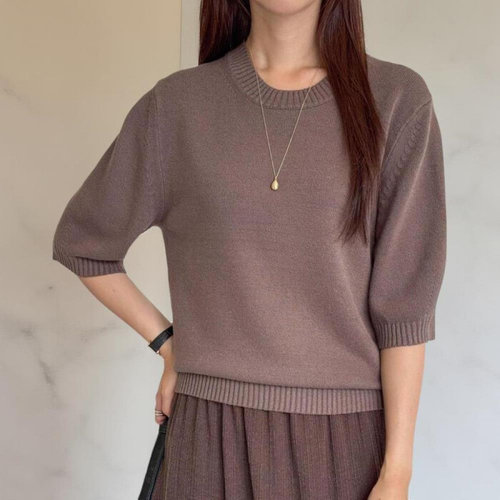 [옷자락] 여성 라운드넥 니트 5부 반팔 데일리웨어 플레인 가을 니트