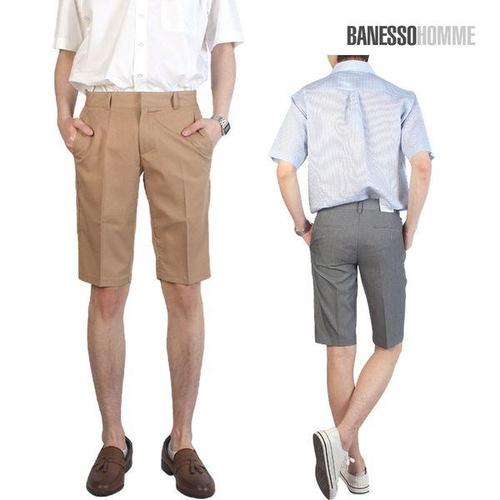 [셀러허브_여성트랜드패션]남자 5부 쿨 버뮤다팬츠 슬랙스 쿨팬츠 밴딩 바지 반바지 와이드 팬츠 여름 남..