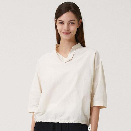 여성 편안한 노치넥 밑단스트링 5부소매 루즈핏 블라우스 CL-WBL0430