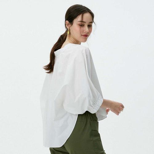 [샵앤]국산 여성 라운드 심플 루즈핏 5부 여름 블라우스 REI-WBL-4642-아이보리