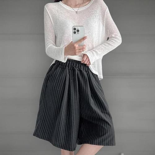 여성용 시원한 5부 와이드 팬츠 하이웨스트 슬림핏 빅사이즈 데일리 오피스 정장바지