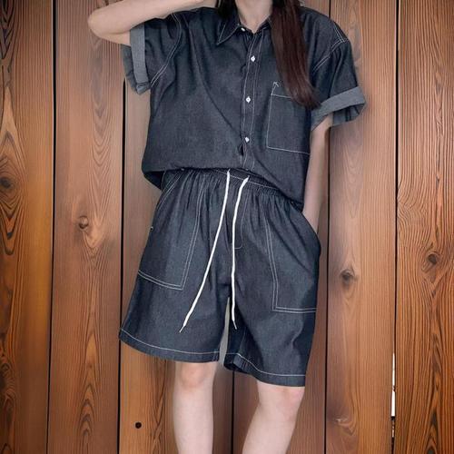 반바지 여자 버뮤다 팬츠 와이드 밴딩 5부 데님 청