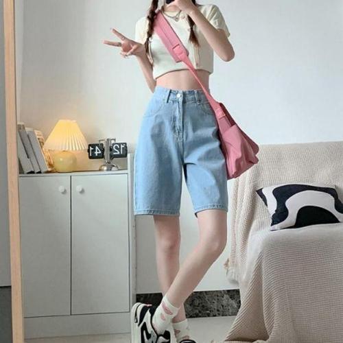 [셀러허브_여성트랜드패션]밴딩 팬츠 데님 반바지 청 와이드 5부바지 버뮤다 5부 청바지