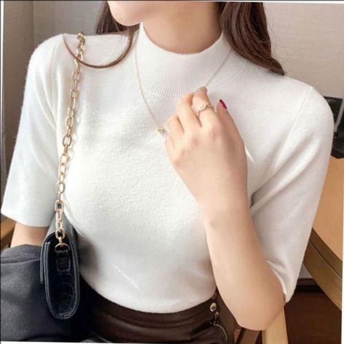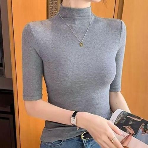 [에이치플러스몰]여성 반목 캐주얼 슬림 5부 필수템 반팔 골지니트티 N