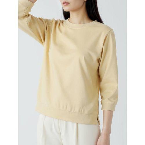 [샵앤]국산 여성 라운드넥 옆트임 밴딩 면 워싱 5부 티셔츠 DAI-WSH-20800-옐로우