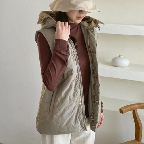 [옷자락]여자 가을 50대점퍼 등산 똑딱단추 패딩조끼 점퍼_3