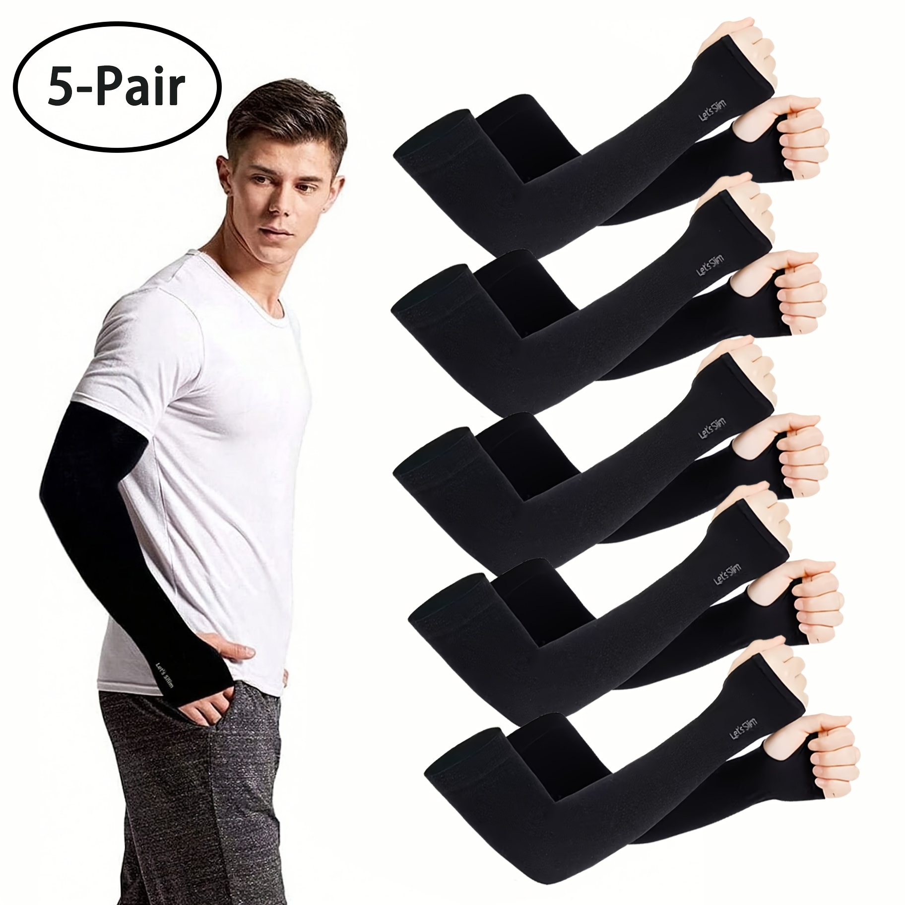 TEMU 5켤레 쿨 암 슬리브. 통기성, 신축성, 속건성. 여름 스포츠, 사이클링 & 데일리 사용에 적합. 가볍고 내구성이 뛰어나고 냉각 효과가 있습니다.
