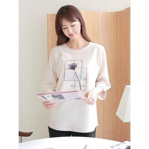[옷자락] 여성 키치무드 프린트 코튼 7부 라운드넥 맨투맨