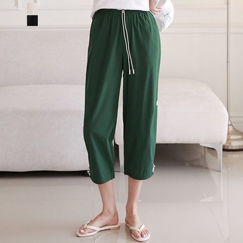 [퀸이즈] 쿨링 7부 스판 밴딩 팬츠