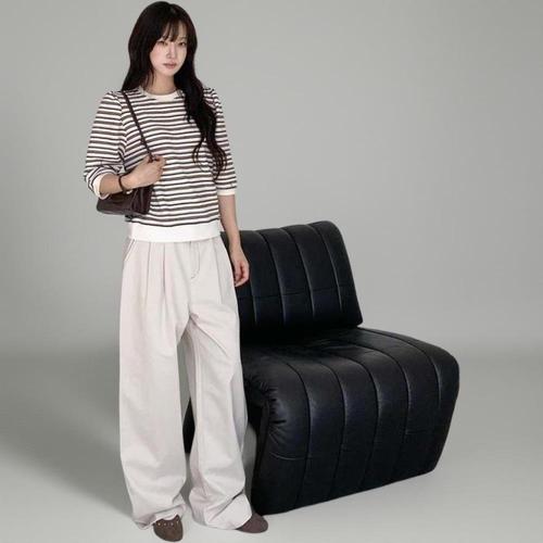 AOKADA 여성 와이드 9부 드롭핏 정장 팬츠 여름 일자 통바지