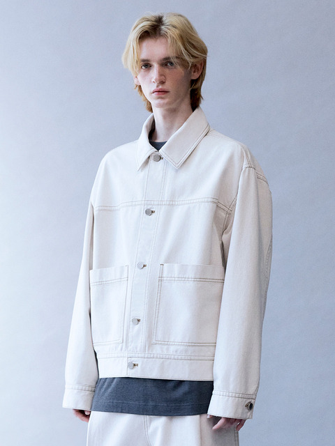 [디써티원] Contrast Stitch Denim Jacket (ALMOND MILK)