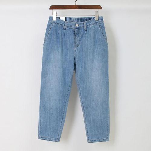 [신상오픈런]여성 8부 데님 팬츠 핀턱 디자인 면혼합 뒷밴딩 워싱