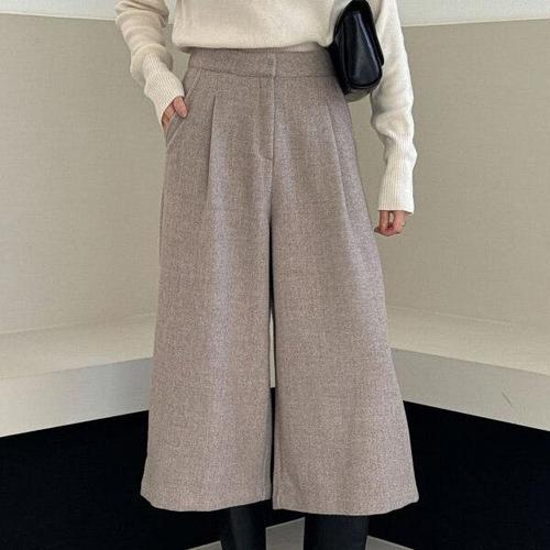 [에이치스타일](MIZ)혜미주름8부헤링본기모와이드슬랙스 겨을