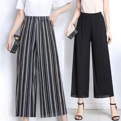 [셀러허브_여성트랜드패션]여름 쿨링 슬랙스 7부 와이드핏 모씨모씨 8부 팬츠 통바지 밴딩 0