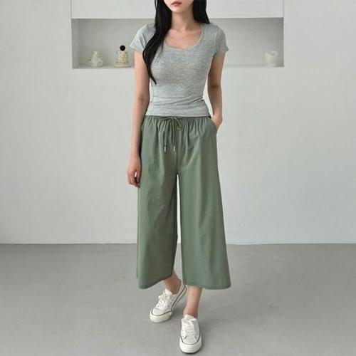 [셀러허브_여성트랜드패션]와이드핏 여름 팬츠 밴딩 8부 7부 통바지 슬랙스 모씨모씨 쿨링 0