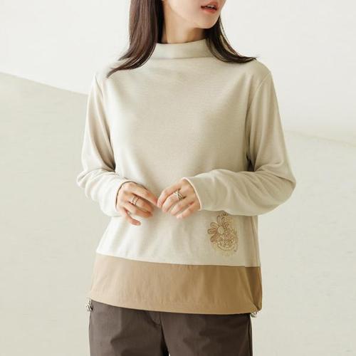 [데드라](~88size)티인배색자수반목티셔츠 TBE5007_DC