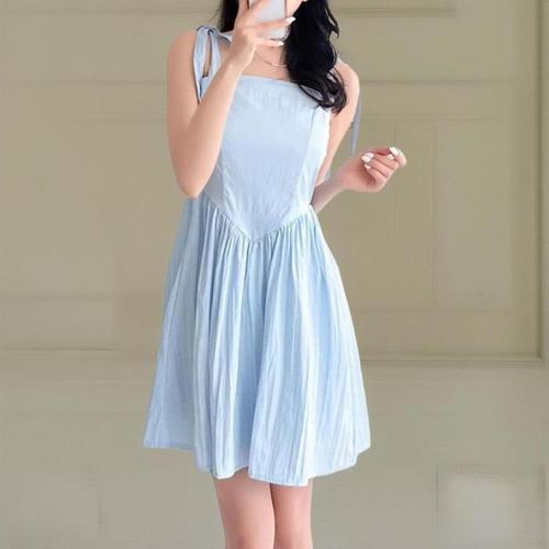 [신상오픈런]여성 리본 스트랩 셔링 A라인 미니 나시 드레스 (38632061)