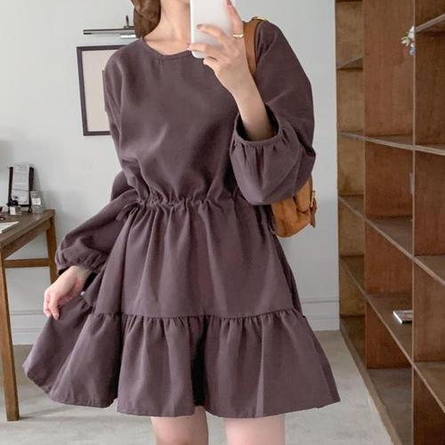 봄 가을 여성 긴팔 원피스 빈티지 스퀘어 미니 원피스 빅사이즈 허리 조임 a라인 여자 미니 원피스 CJJ
