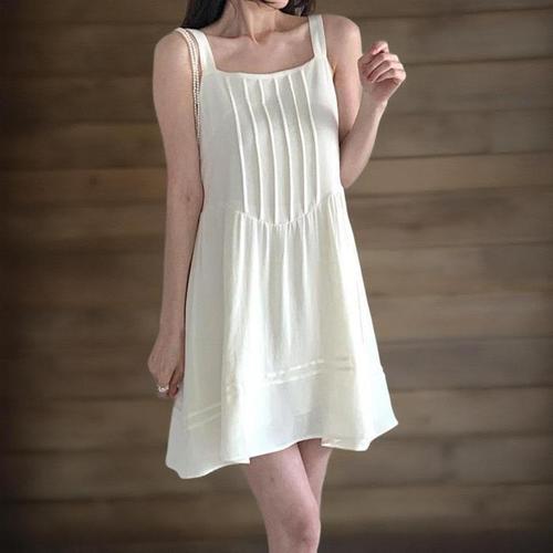 [신상오픈런]여성 캐주얼 핀턱 스퀘어넥 민소매 A라인 미니 드레스 (33306073)