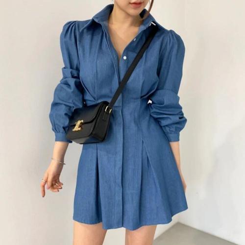 [오너클랜]인기상품 여성 A라인 밴딩 카라 단추 퍼프 소매 미니 원피스 [WFJI2H8_251111]