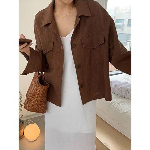 린넨혼방 솔리드 자켓 다크카키(A0B925227)