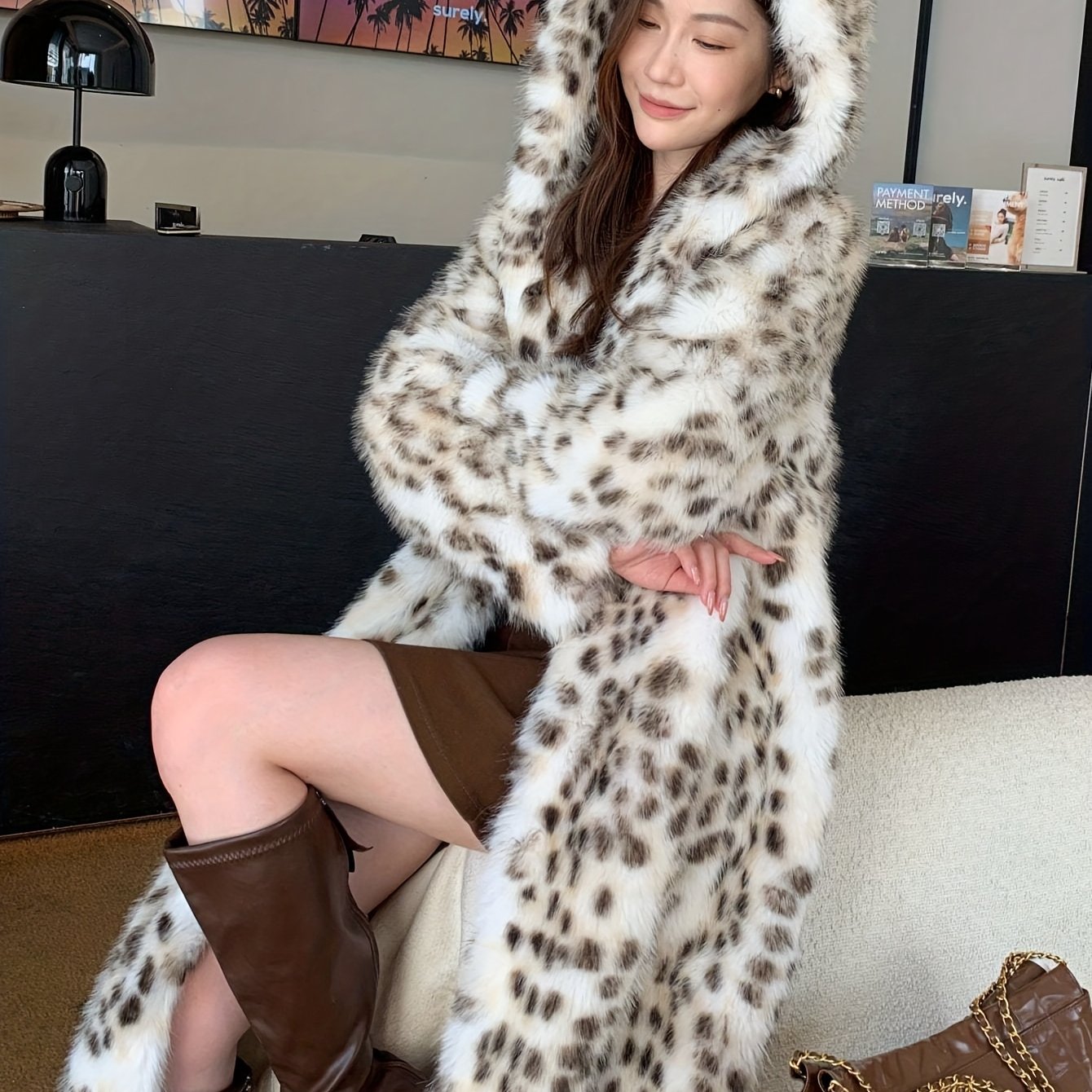 TEMU 여성용 긴 프린트 캐주얼 후드 페이크 코트