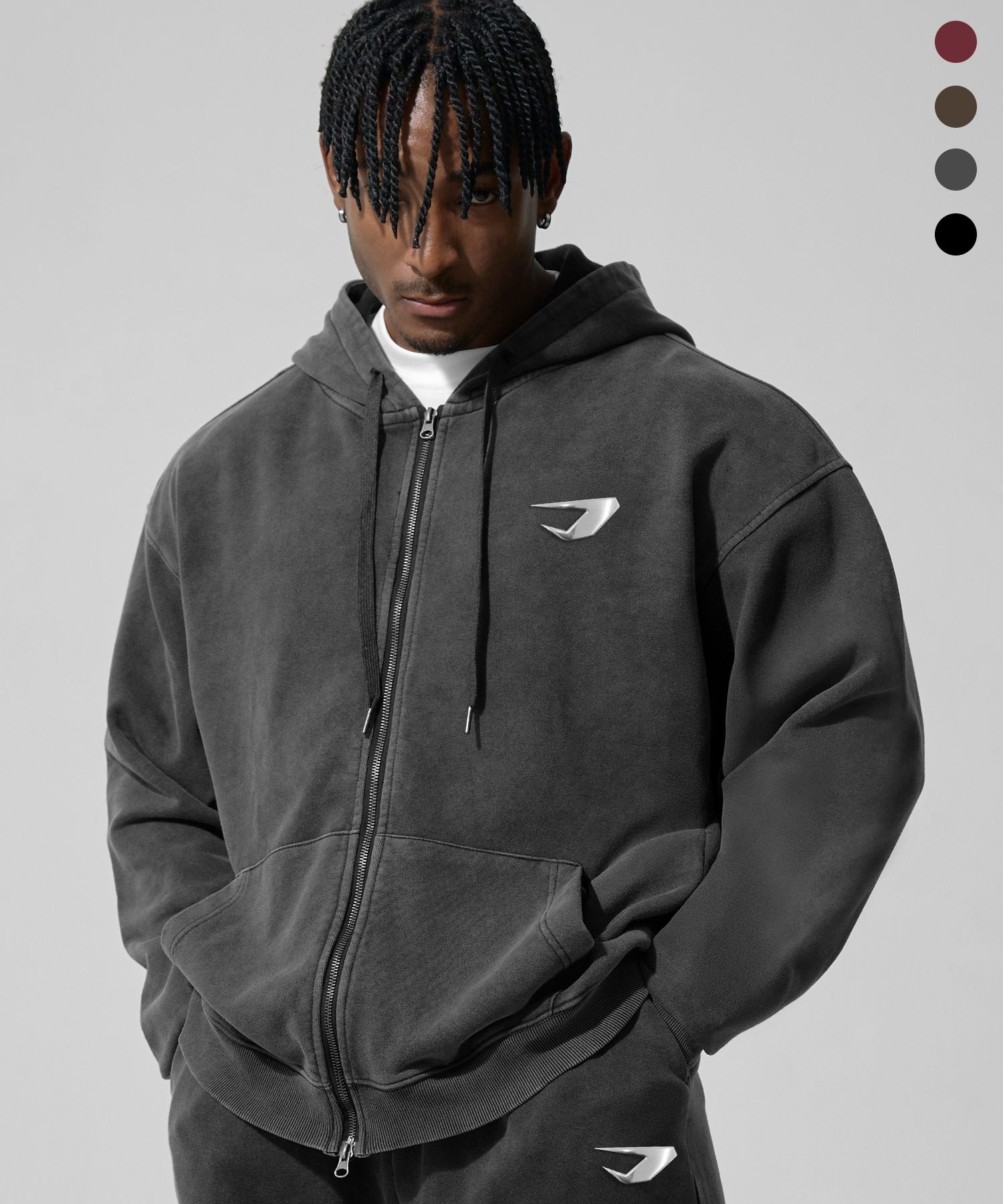 TPU 메탈 심볼 피그먼트 후드 집업_4color