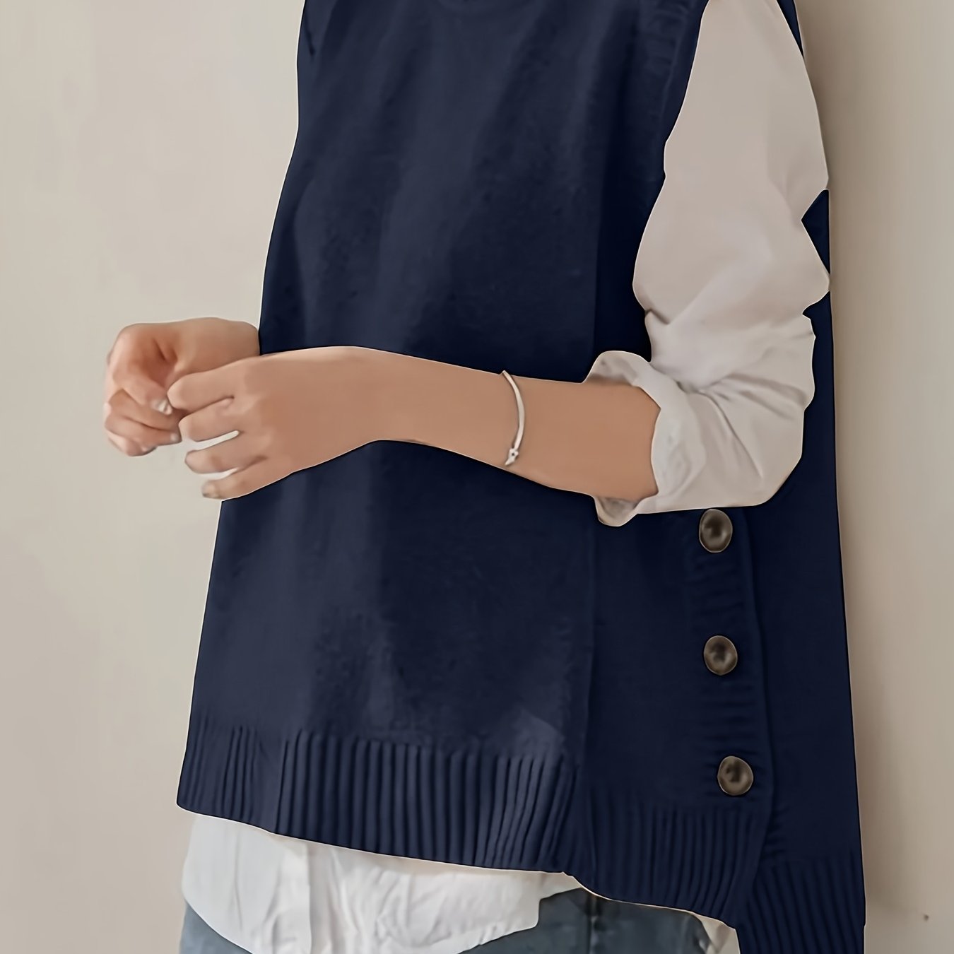TEMU 36 시 후청 방향성 여성용 라운드넥 숏 프론트 & 롱 백 버튼 스웨터
