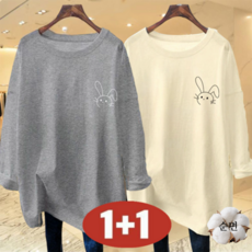 오스틱니 빅사이즈 1+1 특가상품 날씬해보이는 100% 순면 겨울 심플 프린트 영문티 긴팔 bf 편안한 긴팔 봄가을 여성 편한 무지 루즈핏 간절기 박스티 캐주얼 긴팔 티셔츠세트