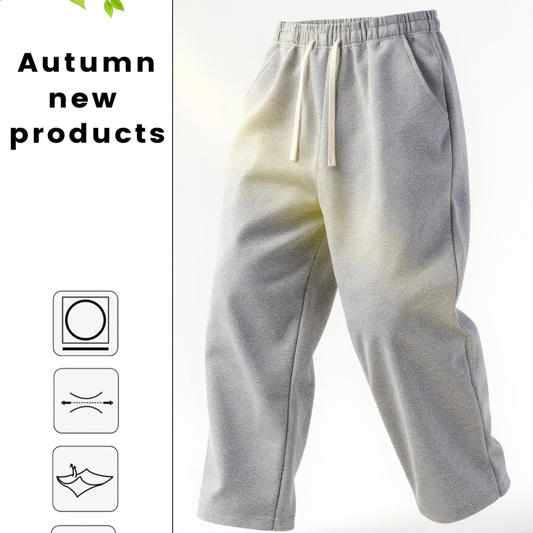 TEMU 싱글 팩 남성 캐주얼 팬츠, 클래식 블랙과 그레이 옵션의 솔리드 컬러 디자인, 가을 신상 패셔너블한 다용도 스타일, 탄력 있는 허리밴드 & 드로스트링 악센트. 데일리 웨어, 외출, 모임 활동, 산책, 스포츠 레저에 완벽한 레그 트라우저, 봄/가을 시즌에 적합, 220g/m² 원단 무게