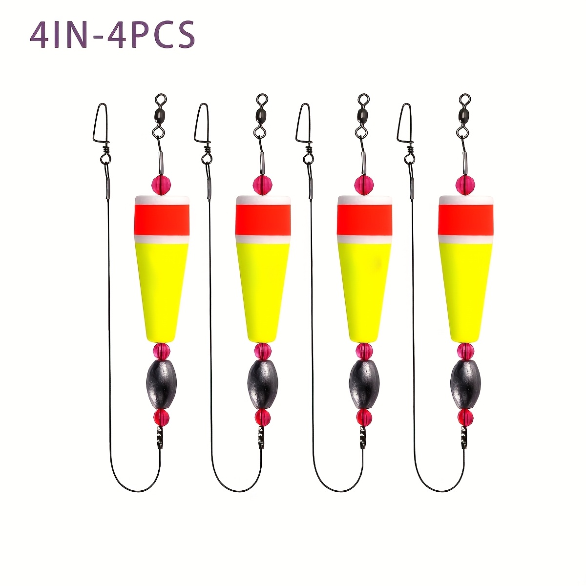 TEMU 소금물 낚시용 플로트 리그 팝핑 코크 무게추 낚시용품 (4개, 2/3/4/5인치, 녹색/노란색/주황색)